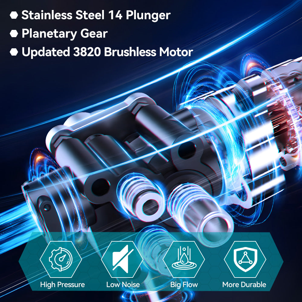 Powerful Cleaning Performance: 300W brushless motor (Model 3820) delivers efficient cleaning for cars, bikes, garden tools, and patios.