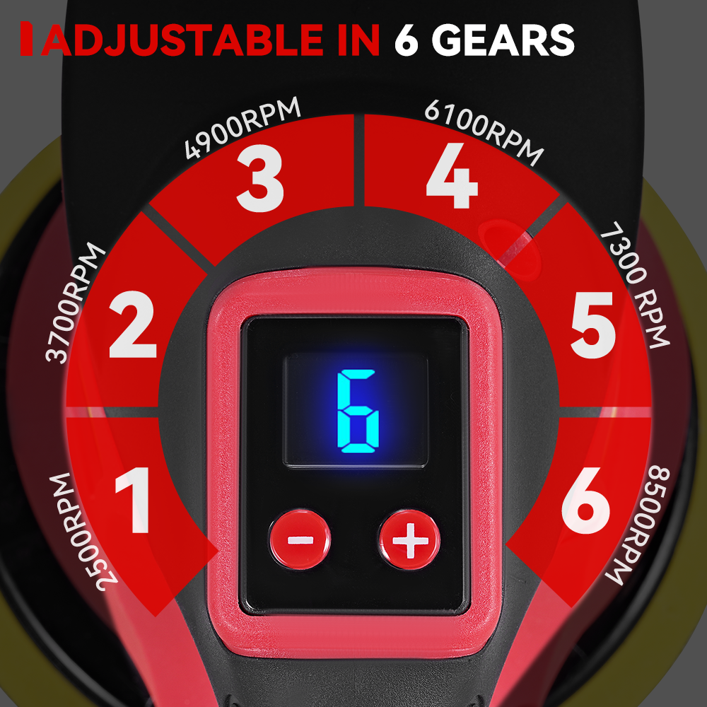 6-Speed Variable Control (2300–5200 RPM) – Easily adjust for waxing, buffing, or finishing different surfaces; ideal for both beginners and professionals.